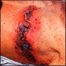 Místně se pokožka ošetřuje dezinfekčními obklady (A1.1).